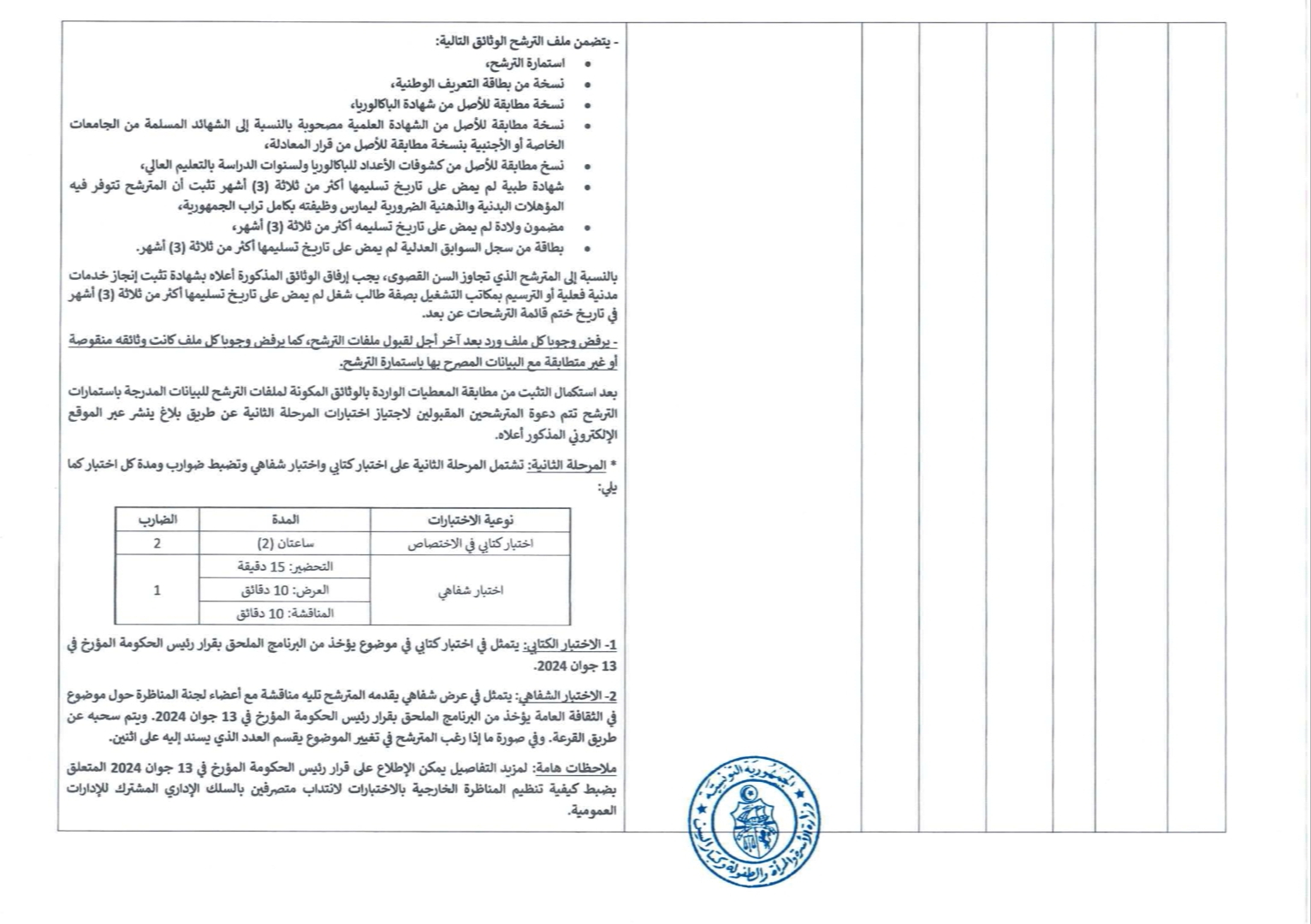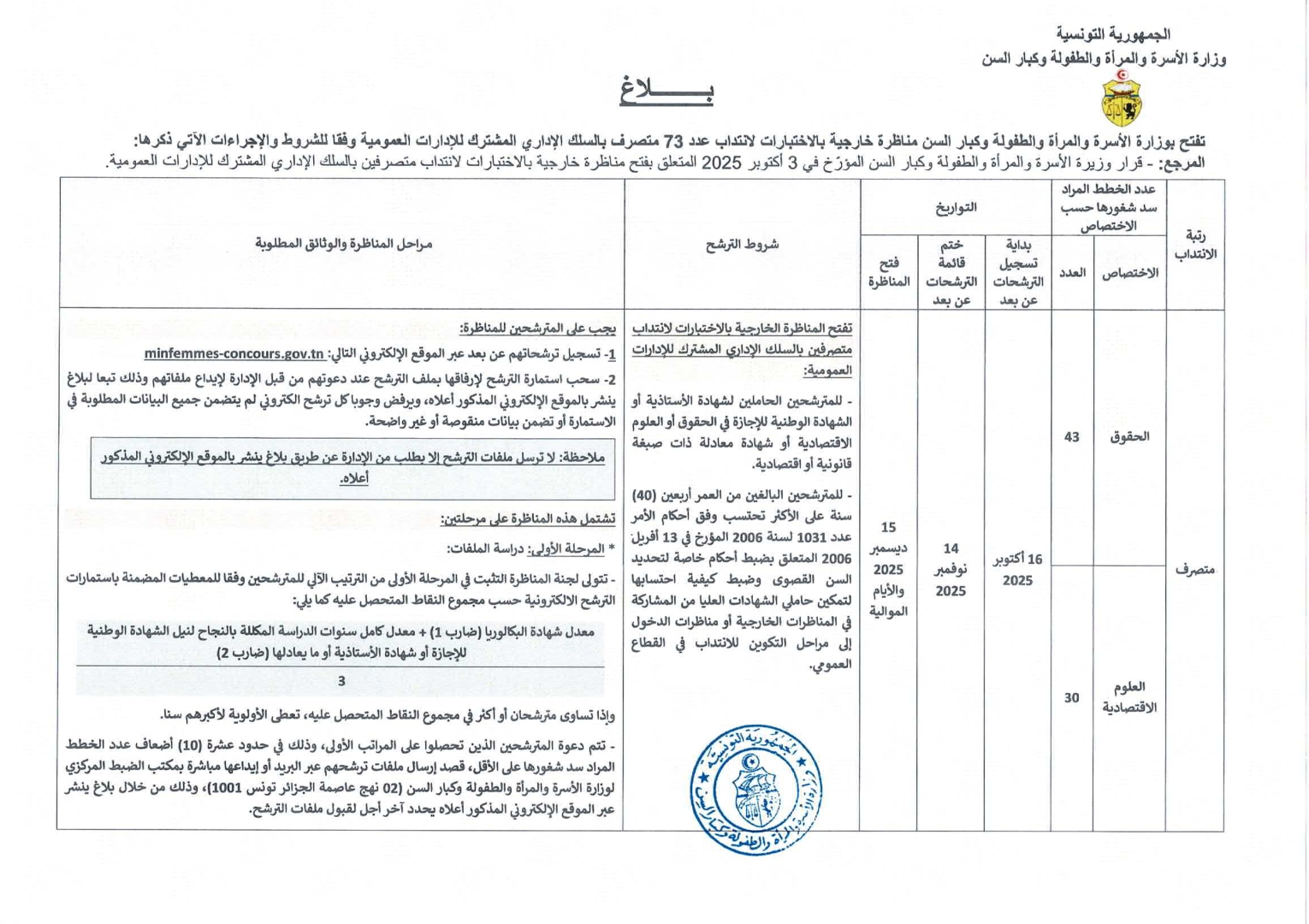 - يجب على المترشحين تسجيل ترشحاتهم حصرياً عن بعد عبر الموقع الإلكتروني: minfemmes-concours.gov.tn